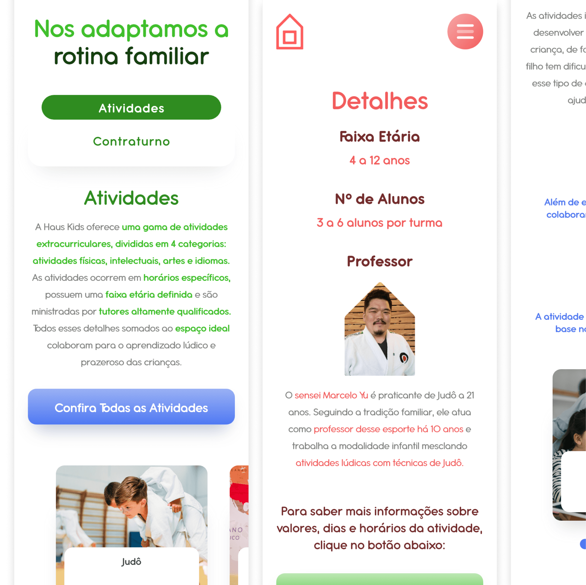 Simplified access to essential information about kids activities on the Haus Kids website.
